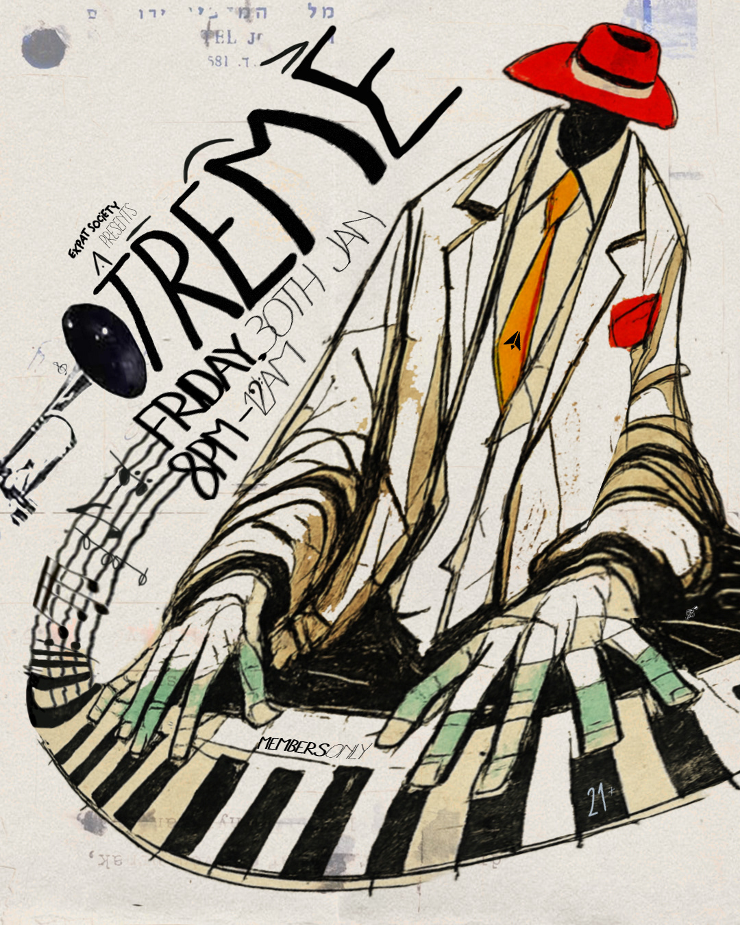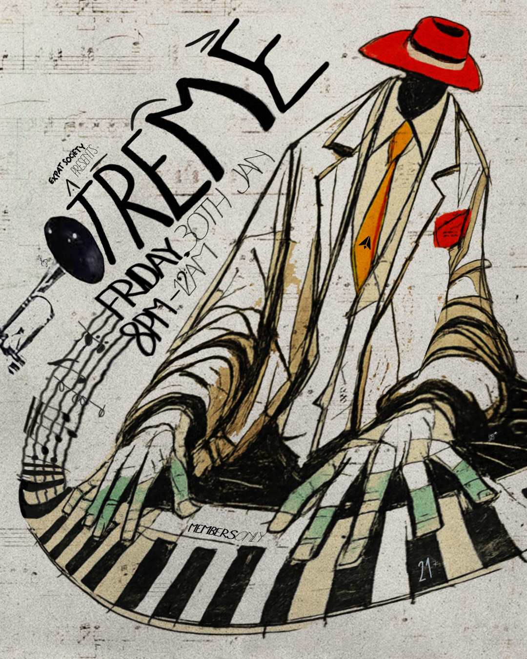 TREME was a members-only event with the creative direction built on the rhythms of jazz music. my main intention for this poster was to capture the essence how jazz music would look like visually. this piece represents one of my most conceptually though out works with the addition of elements like the music notes as well as elements references paying respect to the history and origin of jazz
